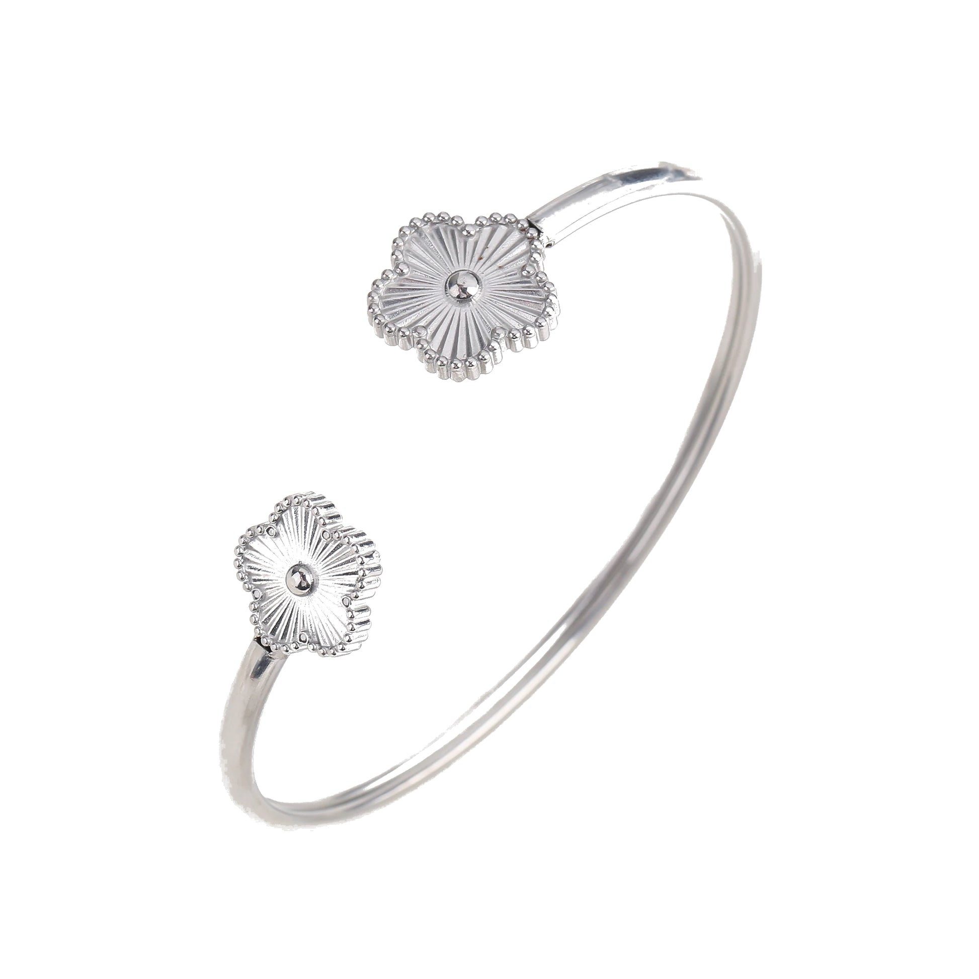 Brazalete Abierto con Detalle de Flor Plateada en Plata