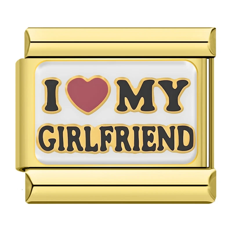 Este charm Italiano "I Love My Girlfriend" brilla con un toque dorado que celebra el amor y la devoción. Hecho en oro, su corazón rojo añade un detalle romántico especial. Es el complemento ideal para personalizar tu brazalete y expresar tus sentimientos. Perfecto para regalar o llevar contigo como símbolo de cariño eterno.