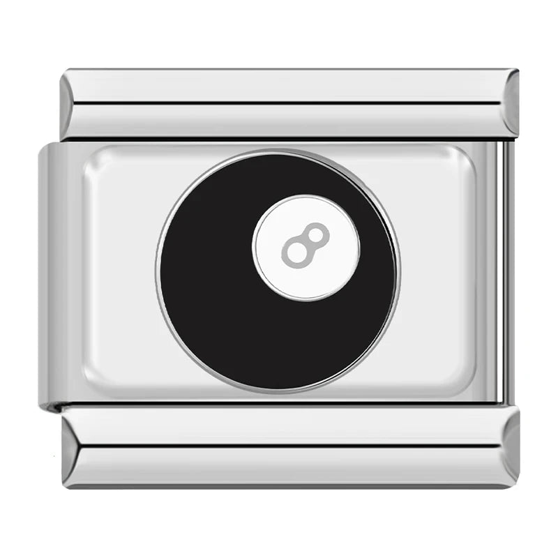 Este charm Italiano de bola 8 trae un toque de diversión y misterio a tu colección. Su diseño en acero inoxidable con el icónico número 8 evoca suerte y personalidad, ideal para personalizar tu brazalete. Un detalle especial para celebrar momentos únicos o para regalar a alguien especial. Perfecto para llevar contigo y añadir un aire juguetón a cualquier look, combinándolo con otros charms para un estilo único.