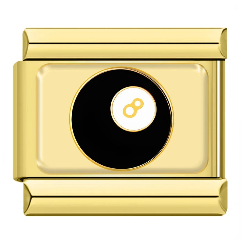 Este charm Italiano de bola 8 irradia elegancia y suerte con su acabado de oro. Su diseño en oro  captura la esencia de los momentos juguetones y memorables. Es el complemento ideal para personalizar tu brazalete y añadir un brillo especial. Perfecto para regalar a un amante de la diversión o para llevar contigo como símbolo de buena fortuna.