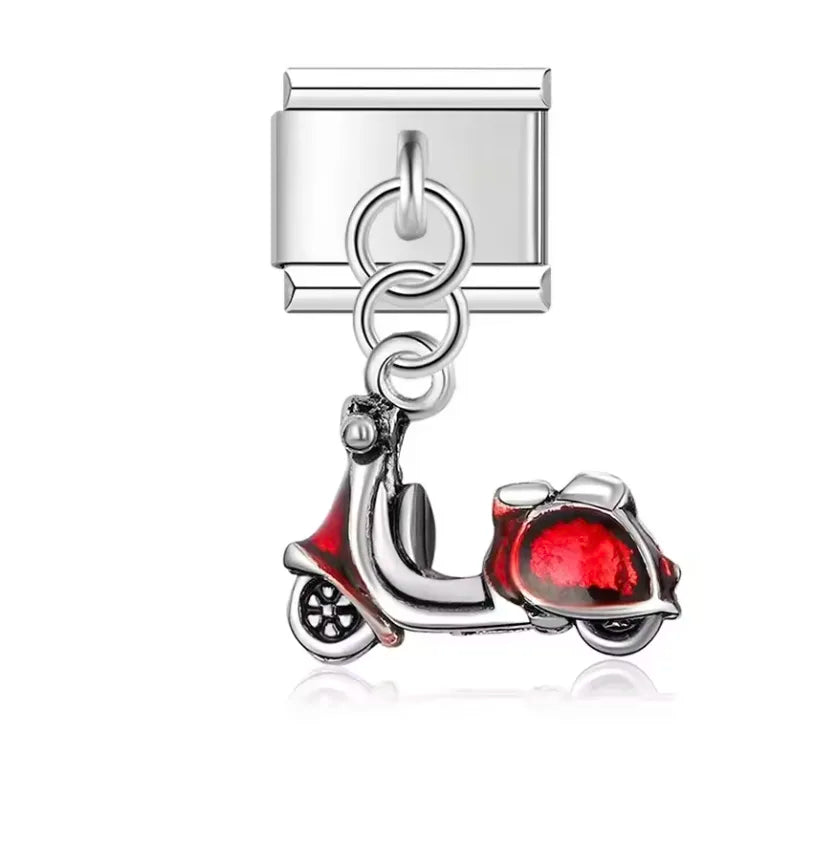 Charm Italiano Plateado con Colgante de Motocicleta Roja