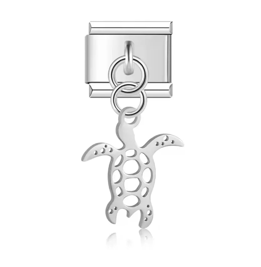 Charm Italiano Plateado con Colgante de Tortuga Marina