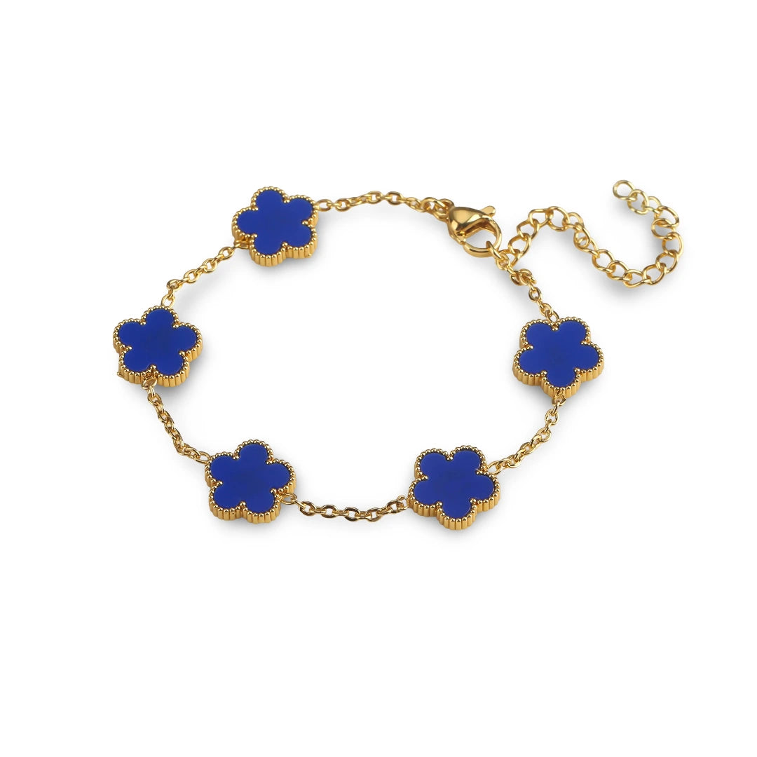 Esta pulsera con flores azules es un detalle especial para celebrar la serenidad y la belleza única. Su diseño encantador, chapado en oro, combina el vibrante azul de las flores con una cadena delicada que añade un toque de elegancia. Es el complemento ideal para un look fresco de día o para destacar en eventos especiales. Perfecto para regalar o llevar contigo como símbolo de calma y estilo.